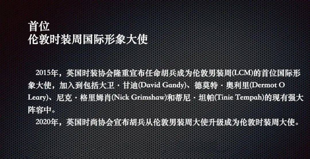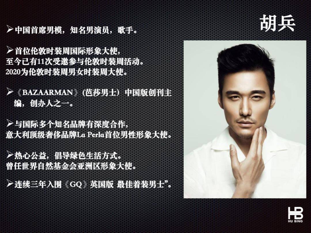 胡兵在国内外时尚行业拥有巨大的影响力,与全球众多知名时尚品牌、设计师、时尚媒体均保持了长期良好的合作关系。